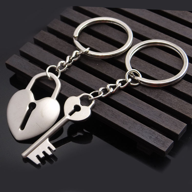 Vintage Key To Love Heart Lock Couples Keyrings Silver Metal Lovers Key Chains