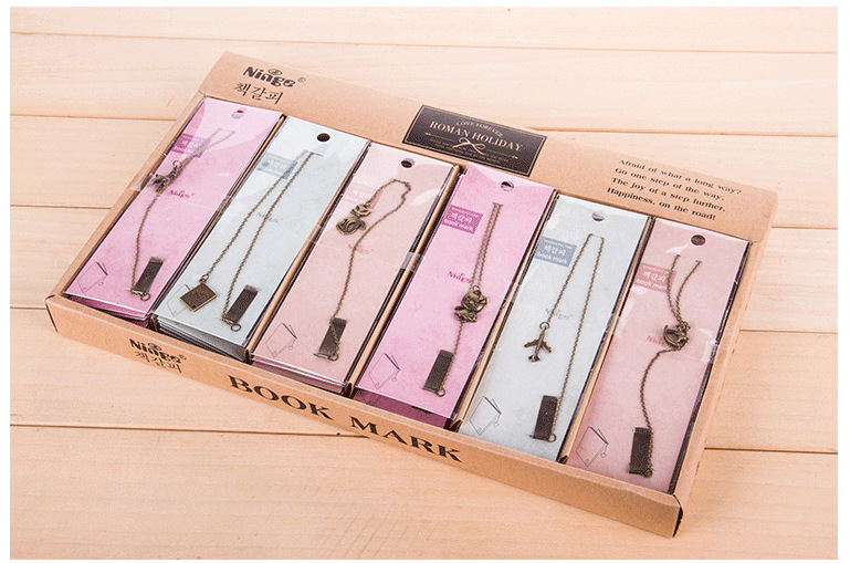 Vintage style metal cooper bookmarks available in six different designs.