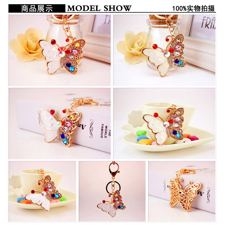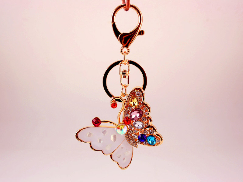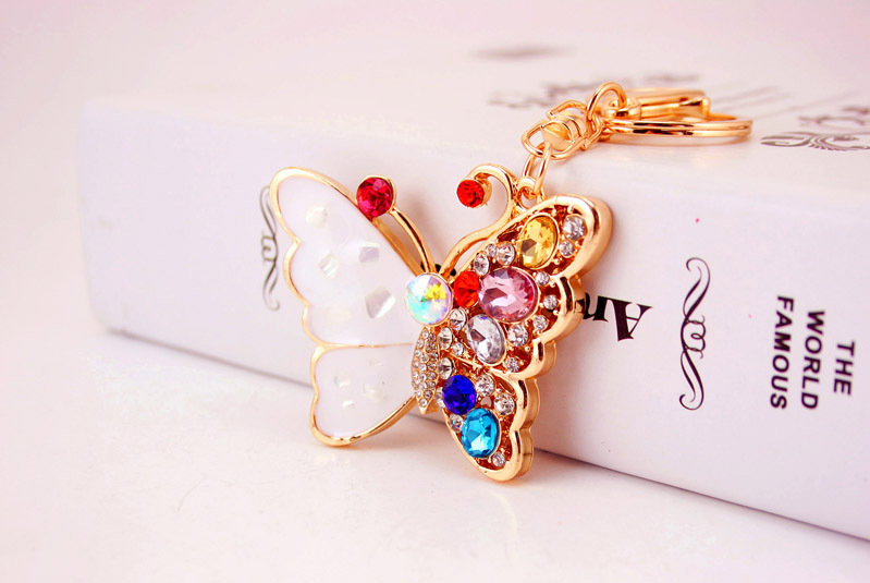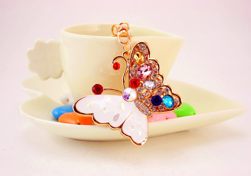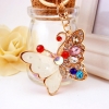 White Colourful Butterfly Crystal Diamante Rhinestone Bag Charms Handbag Keyrings Pendant Key Chain
