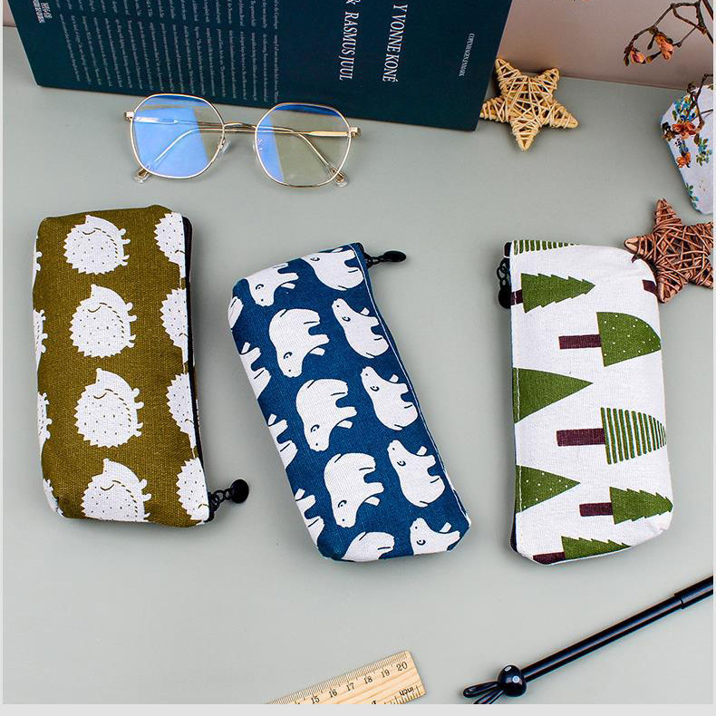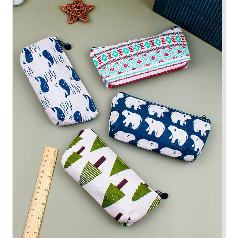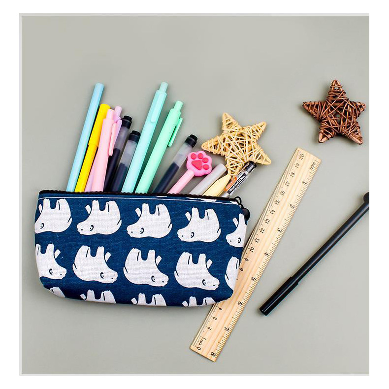 Details:Wild Animals Pattern Canvas Cute Pencil Cases Cosmetics Make Up Bags Pen Pouches