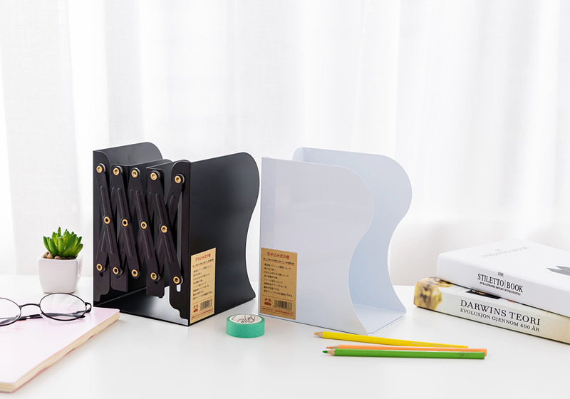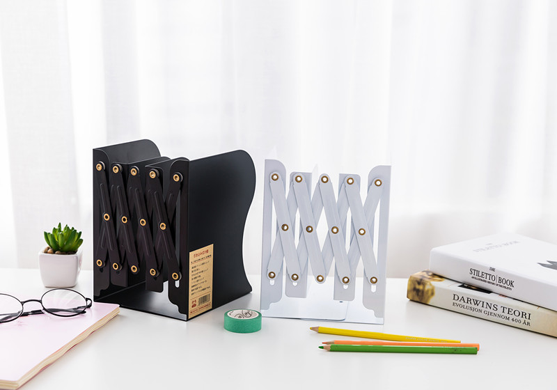 Compare to traditional two-piece bookends, the telescopic bookend can stand more stable on the table.