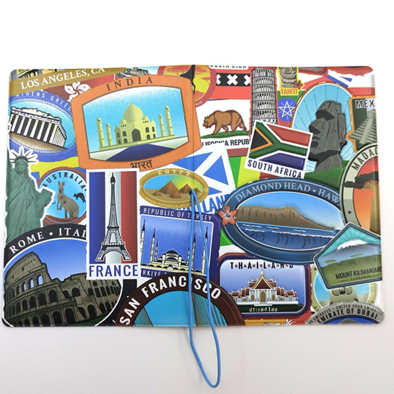 World Landmark Building Cute Passport Cover Travel ID Holder Wallet Protector Case With Card Ticket